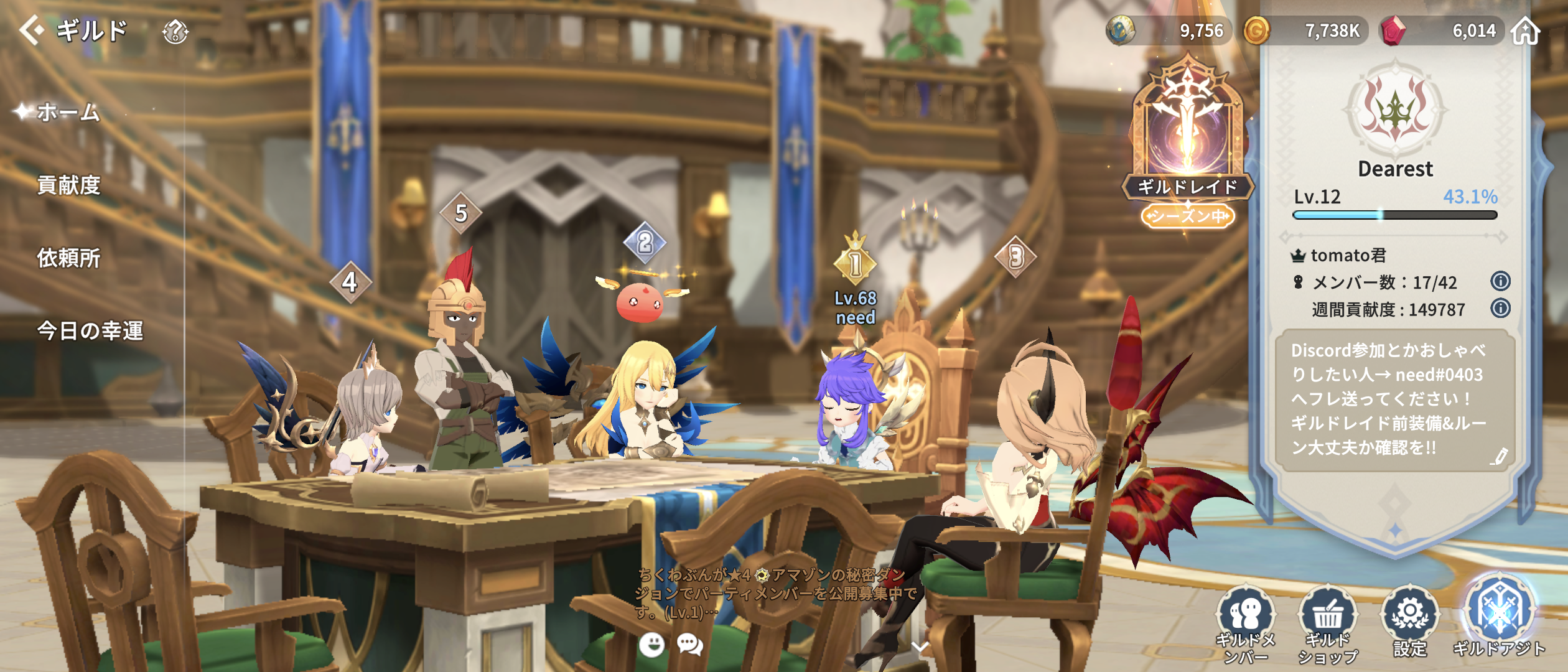 ギルド内PTレイド入って床ペロしてももーまんたい!ꉂꉂ(๑˃▿˂๑)なワイワイ系ギルメン募集〜🤙😘