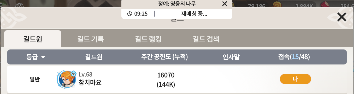 길드 주간 공헌도 2추자